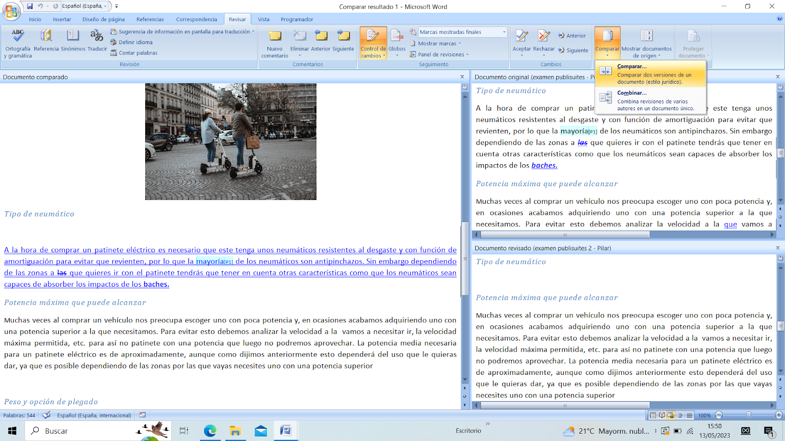 Este apartado te permite comparar dos documentos o más para ver todos a la vez. También te permite combinar dos documentos similares (con similares me refiero a documentos que son iguales, pero que alguno tiene más información que otro).